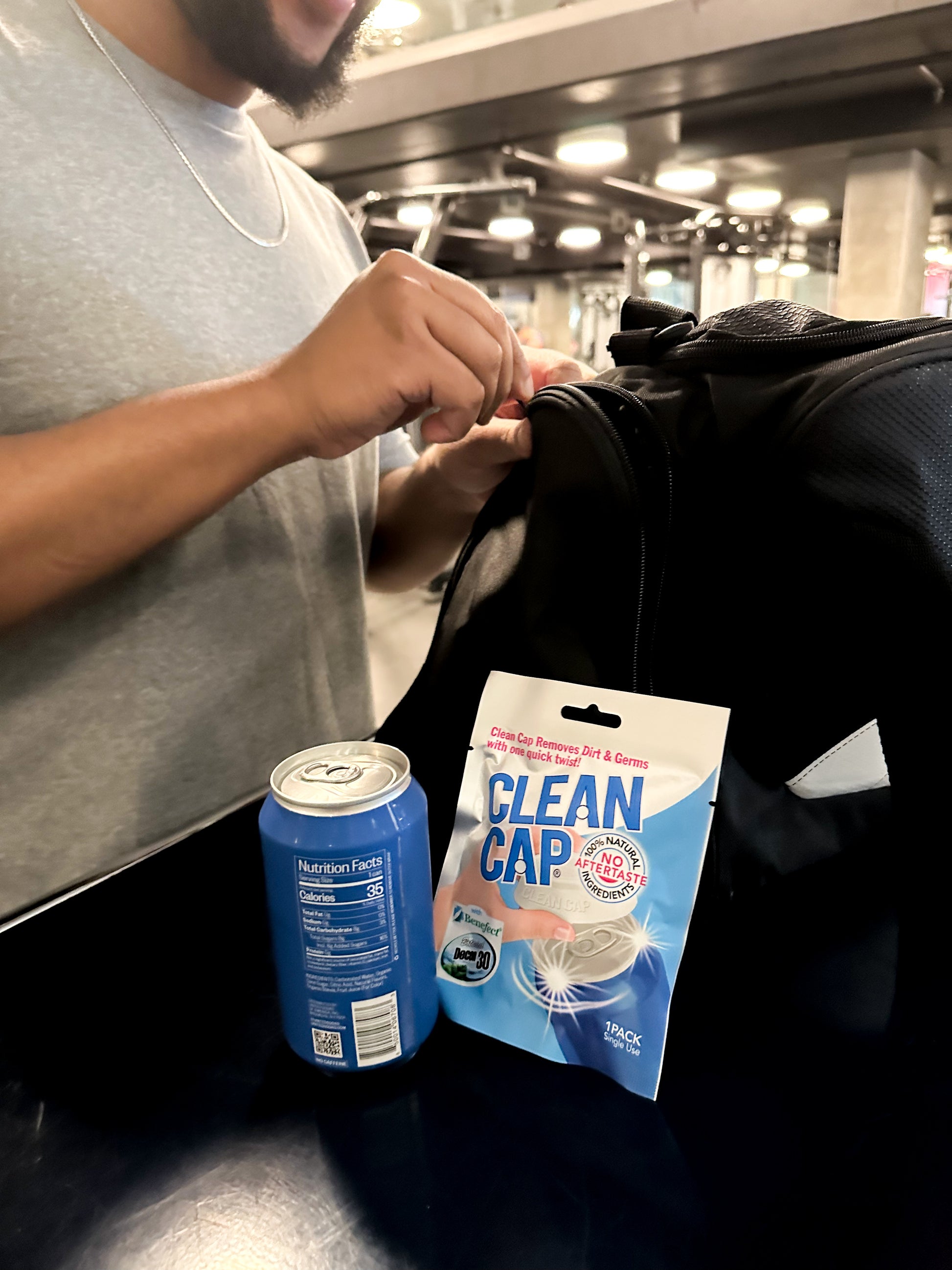 CleanCap is a portable, easy-to-use tool that sanitizes beverage can tops, removing 99.9% of germs and dirt for safe, clean sips every time.
